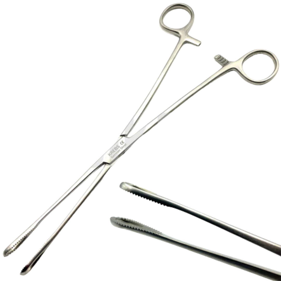 Fidelis Foerster Sponge Holding Forceps Straight Serrated Jaw 25 cm is a general surgery instrument, generally used to withhold sponges or swabs when surgeons continuing their operations. They are scissors shaped and their jaws are serrated.