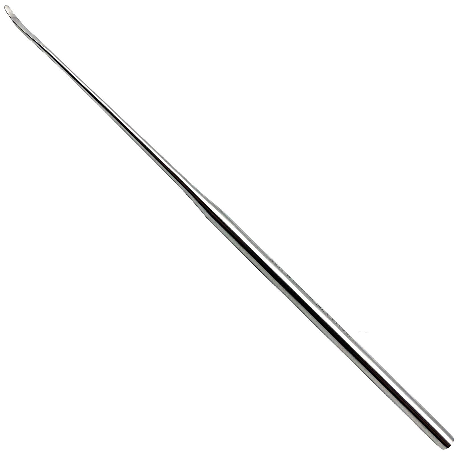 Fidelis Penfield Dura Dissector Fig. 4 x 21.5 cm, which is also known as the large pancake dissector is a double-ended instrument that is used in different surgical procedures for dissecting, scraping, and separating soft tissues from bone. It is used in surgeries of the nasal septum and in craniotomies to separate the dura. It is also used as a guide during drilling procedures. It has a central flat handle, with two dissimilar blades. One end is a sharp and slightly curved oval shaped blade, while the other end is a blunt scoop shaped blade. Fidlelis manufacture five distinct figures of the Penfield Dura Dissector to accommodate different surgical indications. We manufacture them from premium quality German stainless steel to ensure positive patient outcomes and facilitate easy and reliable sterilization after each procedure.